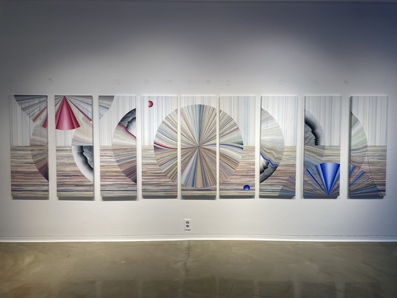 관객이 직접 오브제를 움직일 수 있도록 한 형식을 통해 부채를 매개로 사물과 인간 사이를 오가는 에너지의 흐름을 시각화한다. 빛과 형태, 운동으로 구성된 반복적 연출은 요소 간의 조화로운 관계를 드러내며, 긴 감상에 지친 관객들에게 색다른 경험을 제공한다.