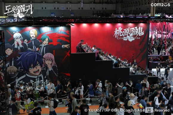 ‘도원암귀 Crimson Inferno’는 7월부터 방영 중인 TV 애니메이션 ‘도원암귀(桃源暗鬼, TOUGEN ANKI)’를 기반으로 컴투스가 개발 중인 신작으로, 이번 도쿄게임쇼 일반 전시관에 단독 부스로 참가해 수십만 명의 관람객을 끌어 모으며 전시 기간 내내 높은 흥행 열기를 이어갔다.