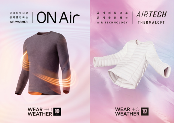 베스트셀러 제품인 ‘온에어(ON Air)’ 발열 내의 역시 실내복으로 편하게 입을 수 있고, 쌀쌀한 날씨에는 레이어링으로도 활용할 수 있다. 베이직한 디자인에 합리적인 가격으로 서서히 입소문을 타고 있다는 게 회사 측 설명이다. 터틀넥과 크루넥으로 이원화된 디자인은 다양한 스타일링이 가능하다. 특히, 마찰에 강한 보풀 방지 조직감으로 설계돼 내구성이 좋다.