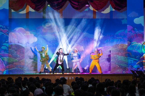 23일에는 경기도 고양시 지축초등학교에서 930여 명의 학생들과 만났다. 알록달록한 무대 조명 아래 페트병·캔·종이상자 등 재활용품을 형상화한 배우들이 등장해 학생들의 호응을 받았다.