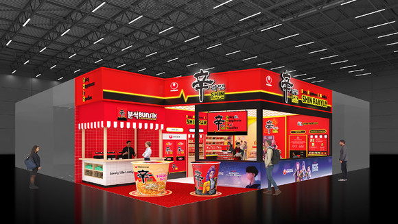 내부는 신라면 툼바, 골드, 똠얌 등 다양한 신라면 라인업을 전시한다. 글로벌 시장 타깃의 신제품 신라면 김치볶음면도 처음으로 소개할 예정이다.