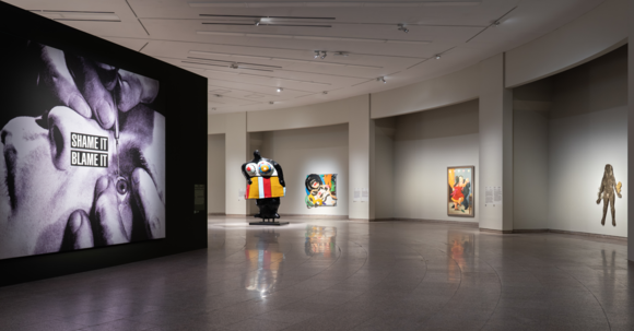 전시실 초입에서 관람객은 바바라 크루거의 ‘모욕하라, 비난하라’를 만난다. 작품 사이즈가 굉장히 크기 때문에 강렬하고 인상적이다. 이 작품은 대중 매체 혹은 매스 미디어가 개인에게 가하는 시각적 폭력을 형상화한 작품이다. 가느다란 바늘 같은 것이 눈을 거의 찌르기 직전의 이미지를 보여주고 있다. 김유진 학예연구사는 이 작품을 맨 앞에 설치함으로써 우리가 일상적으로 보는 것들, 그리고 우리가 일반적으로 알고 있던 생각들에 대해 다르게 볼 수도 있다는 가능성을 보여주고 싶었다고 전했다.