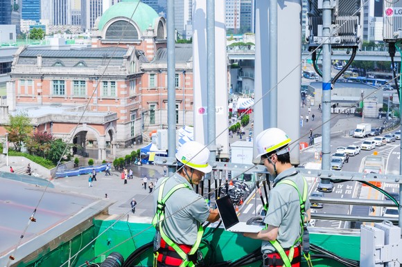 LG유플러스 임직원이 서울역 인근 네트워크 장비를 점검하고 있다. 사진=LG유플러스