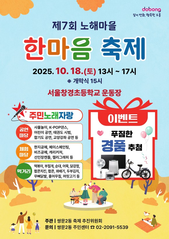 서울 도봉구(구청장 오언석) 쌍문2동이 10월 18일 오후 1시 서울창경초등학교에서 ‘제7회 노해마을 한마음 축제’를 개최한다.