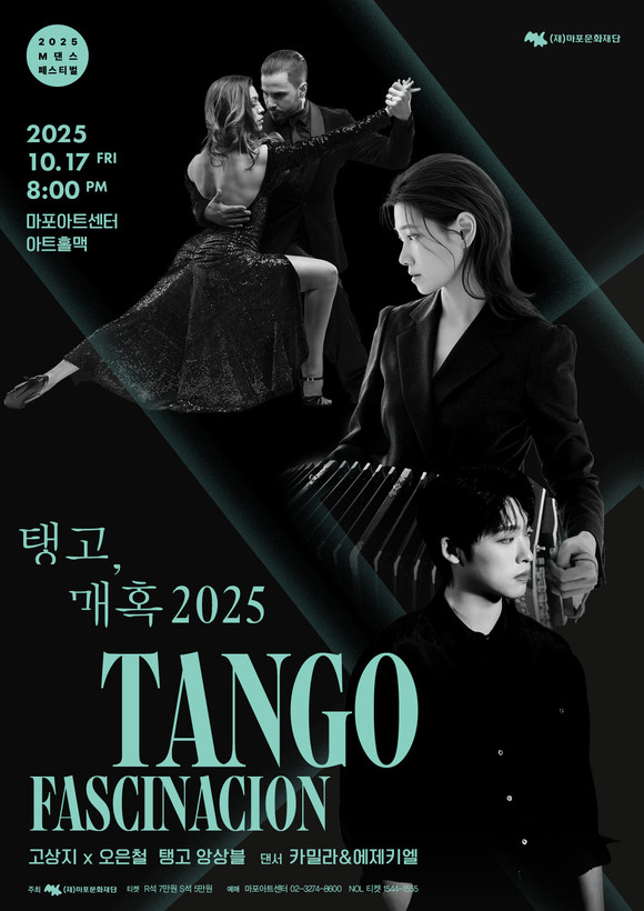 마포문화재단(대표이사 고영근)은 오는 10월 17일 세계 최정상급 탱고 아티스트가 함께하는 <탱고, 매혹 2025> 공연을 개최한다. 한국 반도네온의 대표주자인 고상지와 슈퍼밴드 우승 피아니스트 오은철이 이끄는 탱고 앙상블이 출연하며, 세계탱고대회 챔피언 카밀라&에제키엘 커플이 무대에 올라 음악과 춤이 어우러진 탱고의 정수를 선보인다.
