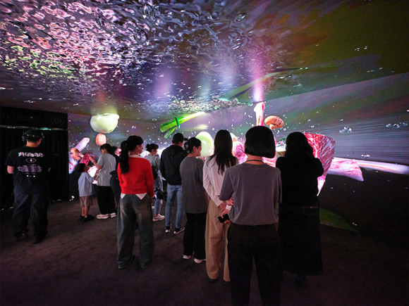 라면 키친(K3) 투어 중간에 조성된 ‘라면 정글’ 구간은 공중에 늘어뜨린 면발 연출이 눈길을 끈다. 투어 곳곳에 마련된 시식 코너에서는 하림산업의 다양한 제품을 직접 맛볼 수 있다.