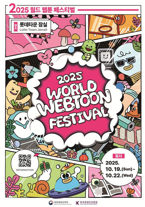 한편 롯데월드와 롯데시네마 월드타워는 19~22일 공식 전시와 체험 프로그램을 진행한다. 롯데월드 아이스링크는 웹툰의 시초부터 현재 그리고 미래까지 연대기를 살펴 볼 수 있는 ‘웹툰 기획 전시’를 중심으로, 웹툰 작가의 ‘라이브 드로잉쇼’, 인기 성우인 남도형의 ‘라이브 더빙쇼’, ‘더 그레이트’와 ‘이태원 클라쓰’ 광진 작가의 사인회 등을 연다. 롯데시네마 월드타워점 8관에서는 인기 웹툰 테러맨의 작가인 한동우, 고진호 작가가 참여하는 토크 콘서트를 비롯해 웹툰 작가 및 유명 제작자의 토크 콘서트 등이 열리며, 올해 최고의 웹툰을 선정하는 시상식인 ‘2025 월드 웹툰 어워즈’도 22일 저녁에 예정돼 있다.