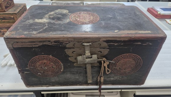 혼수함(婚需函)은 1926년경 결혼한 기증자 박수애 씨의 조부모 유물로 추정된다. 전통 목공예 형식을 바탕으로 근대적 요소가 가미된 형태로, 흑칠 바탕에 붉은 모서리 장식, ‘수(壽)·복(福)·희(囍)’ 문양이 새겨져 있다. 내부에는 납폐서, 사주단자, 부모의 결혼식 축사(1958년) 등 혼인 관련 문서가 함께 보관되어 있었다.