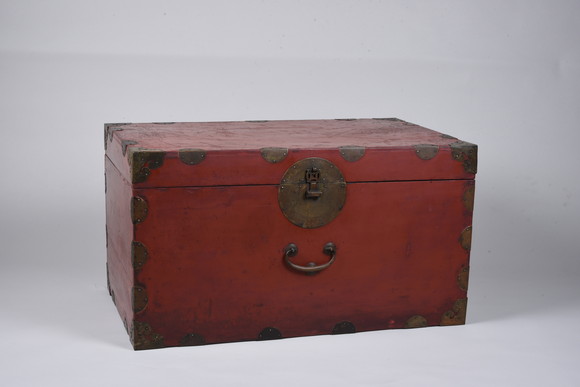 주칠쌍함(朱漆雙函)은 기증자 남궁정 씨의 외조모로부터 전해 내려오는 유물로, 조선 왕실 목공예 양식의 금속 장식을 갖춘 한 쌍으로 제작된 대형의 붉은색 주칠함이다. 금속에는 ‘수’(壽)와 ‘복’(福) 등의 문자 무늬와 초화문(草花紋)이 새겨져 있으며, 수공으로 제작된 못이 사용되어 정교한 제작 기법을 보여준다. 기증 당시 옻칠층 손상과 변형이 확인되어 과학적이고 전통적인 보존처리를 실시하였다.