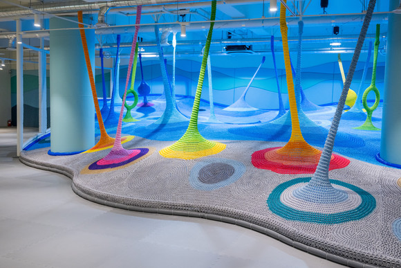 ‘갯벌놀이터’는 경기창작캠퍼스 선감생활동 1층에 조성된 체험형 교육 전시 공간으로, 문화예술과 서해바다 생태의 공존이라는 철학을 바탕으로 설계했다. 공간은 실내형 ‘갯벌놀이터’, 독서 공간 ‘갯벌책방’, 야외 활동 공간 ‘갯벌마당’, 보호자 휴게공간으로 구성되어 있으며, 가족 단위 방문객은 물론 전 연령층이 함께 놀이와 체험 교육, 휴식을 즐길 수 있도록 마련되었다.