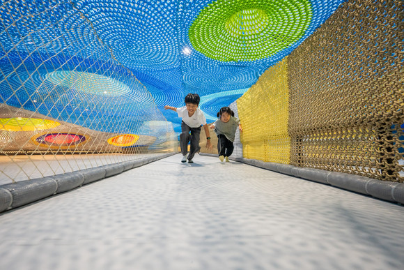 ‘갯벌놀이터’는 갯벌의 생태적 요소와 환경적 특성을 바탕으로, 그물 구조를 예술적으로 구현한 비정형 놀이시설이 특징이다. 공간 자체가 하나의 예술적 체험으로 작동하며, 어린이들이 갯벌의 역동성과 생명력을 몸으로 느끼고 탐험할 수 있도록 설계되었다. ‘갯벌책방’은 약 2,000권 규모의 서가를 갖춘 자율 운영 독서 공간으로, 놀이와 독서를 함께 즐길 수 있는 열린 문화공간이다. 경기문화재단 임직원, 지역 주민, 경기도 내 출판사 등의 자발적인 도서 기증으로 서가가 채워지며, 기증자에게는 경기문화재단 기부캠페인 ‘문화이음’을 통한 기부 혜택이 제공된다. ‘갯벌마당’은 탄성 고무칩 바닥에 다양한 색상과 형태의 패턴이 조성된 야외 놀이터로, 어린이들이 즐기는 야외 마당 놀이(멀리뛰기, 사방치기, 원마커 등)를 할 수 있도록 구성되어 있으며 자유로운 신체 활동이 가능하다. 인근 테라스에는 인조잔디와 야외용 테이블·의자가 마련되어 있어 보호자들이 아이들을 가까이에서 지켜보며 휴식을 취할 수 있다.