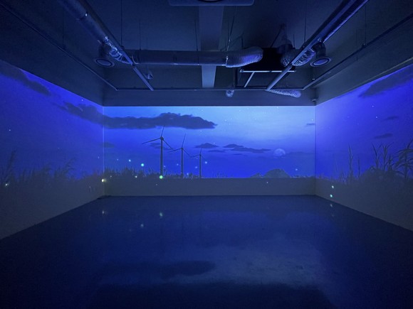 이 전시는 계절과 시간대에 따라 변화하는 대부도와 선감도의 자연을 소재로, 갯벌이라는 자연 너머에 존재하는 생태적 다종다양성을 빛과 색, 소리를 통해 감각적으로 구현한 몰입형 미디어 아트 작품이다. 소금과 갯골, 그리고 물은 갯벌과 섬, 바다를 이루는 본질적 지형이자 물질로, 이를 통해 드러나는 서해 섬의 생태는 우리가 흔히 떠올리는 푸른 바다의 이미지보다 훨씬 더 다층적인 아름다움을 품고 있다.