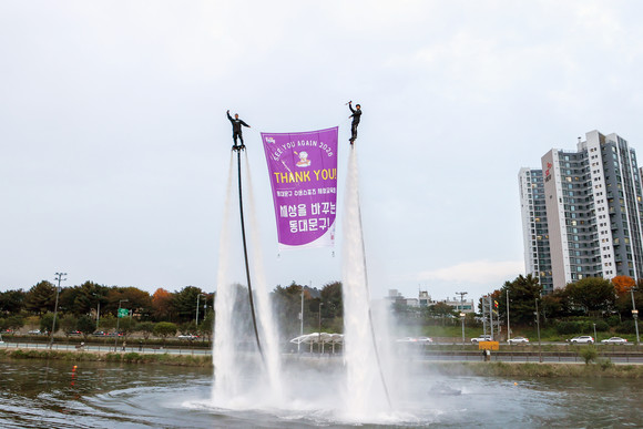 또한 플라이보드, 카약 퍼레이드, 용선 퍼레이드 등 화려한 수상 퍼포먼스와 축하공연이 이어지며 수상스포츠 축제의 매력을 한껏 느낄 수 있도록 했다. 행사장 주변에는 포토존, 페이스페인팅, 물풍선 던지기, 마술쇼 등 가족 단위 관람객이 함께 즐길 수 있는 다채로운 부대행사도 마련됐다.