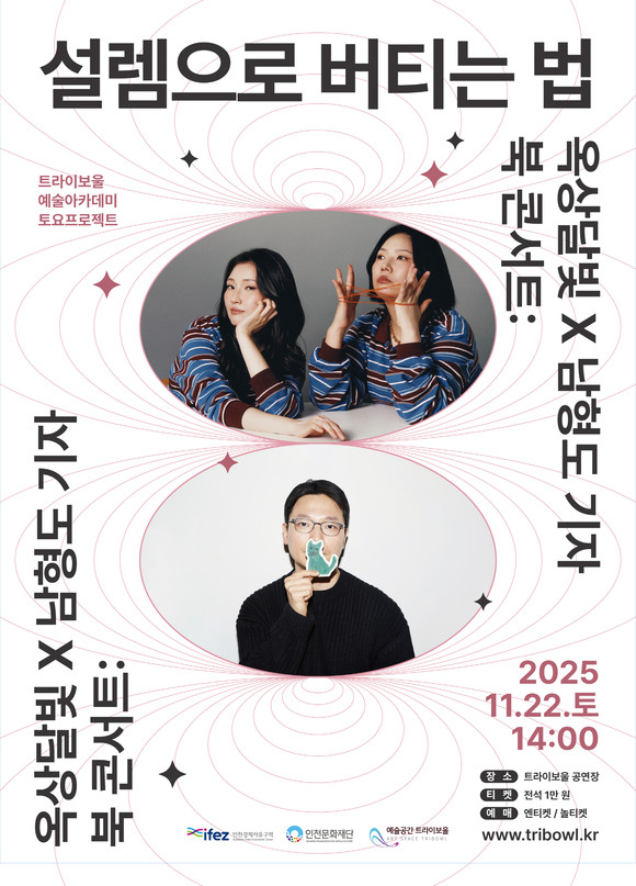 (재)인천문화재단이 운영하는 트라이보울에서 오는 11월 22일(토) 오후 2시, <트라이보울 토요프로젝트 ‘옥상달빛×남형도 기자 북 콘서트: 설렘으로 버티는 법’> 이 열린다.