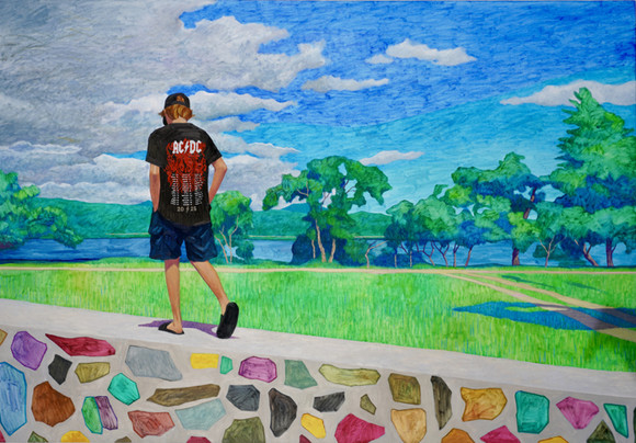 ‘강변 유람’ 시리즈는 작가가 파리 센 강을 여행하며 직접 촬영한 사진을 바탕으로 제작됐다. 약 4년 만에 다시 이어진 이번 작업에서, 그는 이전의 사실적인 묘사에서 벗어나 점·선·면과 같은 조형의 기본 요소로 화면 일부를 재구성하고, 이전 작업에서는 감추어 두었던 붓질을 적극적으로 드러낸다. 동일한 주제를 다시 다룰 때, 시기와 시선의 변화에 따라 화면이 어떻게 달라질 수 있는지를 관찰하는 작가의 태도가 돋보인다.