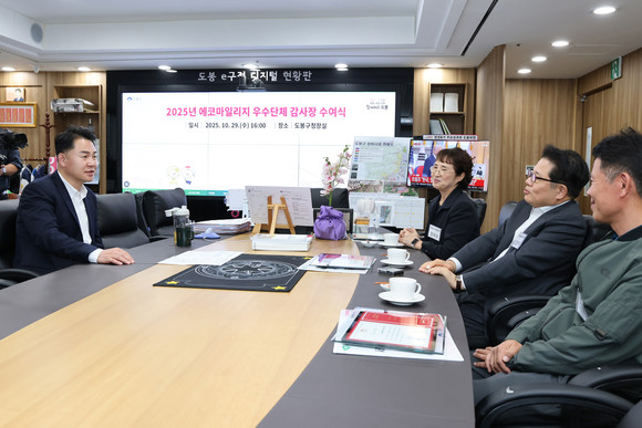 서울 도봉구(구청장 오언석)가 10월 29일 2025년 서울시 에코마일리지 우수단체로 선정된 도봉구 지역 업체 4개소에 감사장을 수여하고, 에너지 절약에 앞장선 노고를 격려했다.