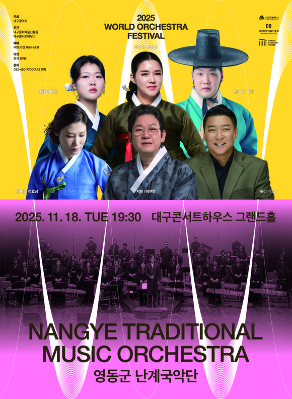 (재)대구문화예술진흥원 대구콘서트하우스(관장 박창근)는 오는 11월 18일(화) 저녁 7시 30분, 그랜드홀에서 <2025 월드오케스트라페스티벌>의 특별한 무대로 ‘영동군 난계국악단’의 공연을 개최한다.
