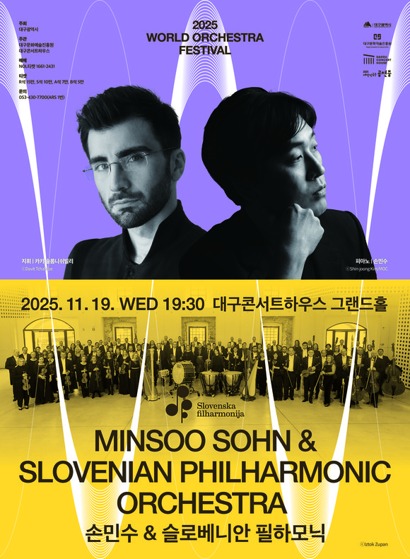 대구콘서트하우스(관장 박창근)는 월드오케스트라페스티벌의 일환으로 ‘손민수 & 슬로베니안 필하모닉’ 공연을 11월 19일(수) 오후 7시 30분 그랜드홀에서 개최한다. 이번 공연은 슬로베니안 필하모닉의 역사적인 첫 내한 공연으로, 세계적인 피아니스트 손민수가 협연자로 나선다.