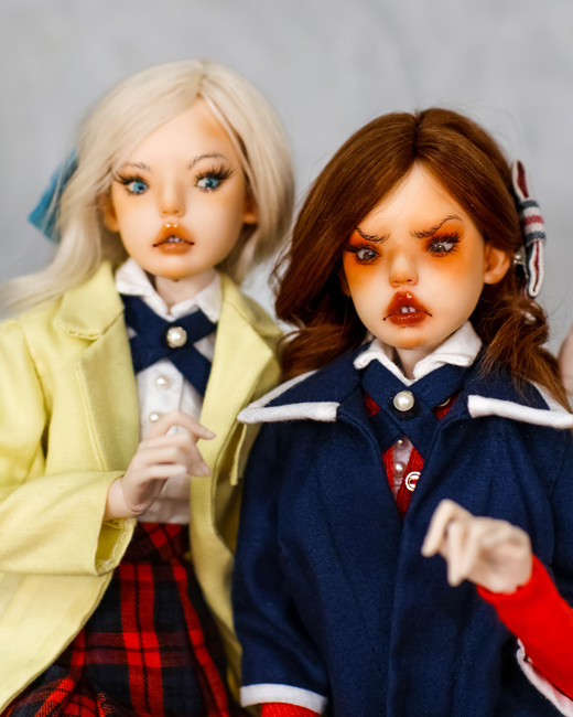 인형은 지브러시로 모델링해 3d 프린팅한 원형을 사포가공한 후에 스프레이로 마무리했다. 그 이후 복제를 위한 실리콘 몰드를 만들어 조색한 우레탄 레진을 부어 굳힌 후 각 파츠를 뽑아내 조립해서 본체를 완성했다. 의상은 가십걸 주인공들의 대표 교복 이미지에서 착안해 코트, 가디건, 치마, 블라우스 등의 패턴을 만들고 재단해 손바느질로 작업했다.