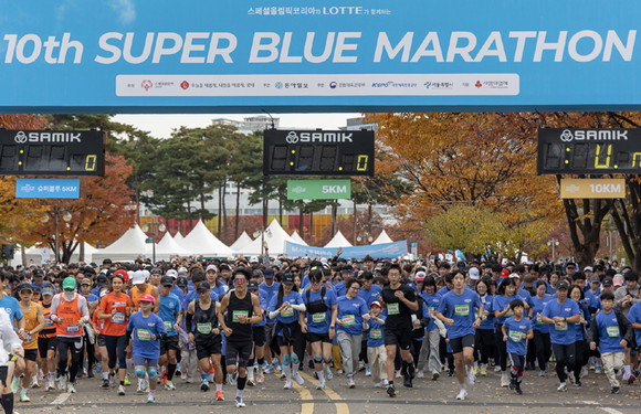 ‘슈퍼블루마라톤’은 롯데의 대표적인 사회공헌 활동으로 장애인의 희망과 자립을 상징하는 파란색운동화끈을 묶고 함께 달리는 행사다. 지난 2015년 처음 시작해 올해로 10회째를 맞이했으며, 누적 참가자 수는 약 8만 명에 달한다.