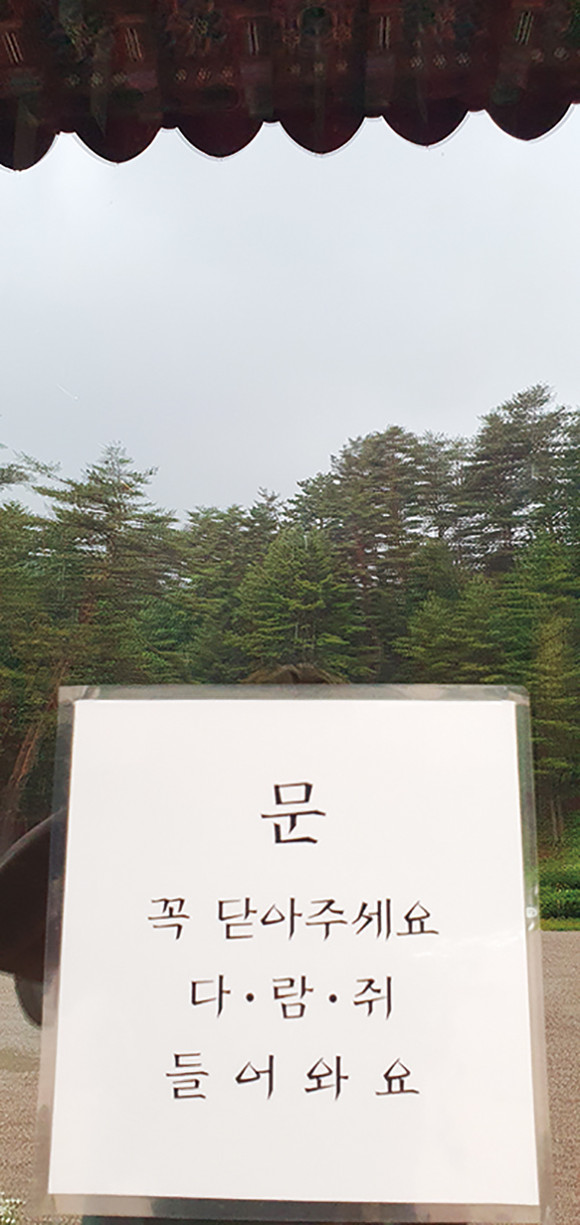 필자가 남대에 간 날은 비가 억수로 내렸다. 지장암 뒤로 이어진 오솔길 맛 깊은 총명수 한 모금 하러 가지 못했다. 법당 툇마루에 앉아 매월당을 생각하며 스님들이 준비해 놓은 사탕을 먹었다. 다람쥐가 많은가 보다. 법당 문 꼭 닫아 달라는 부탁의 말씀이 적혀 있다. 우리 땅에 살다가 먼저 떠난 이들의 명복을 빈다. 나무지장보살~.