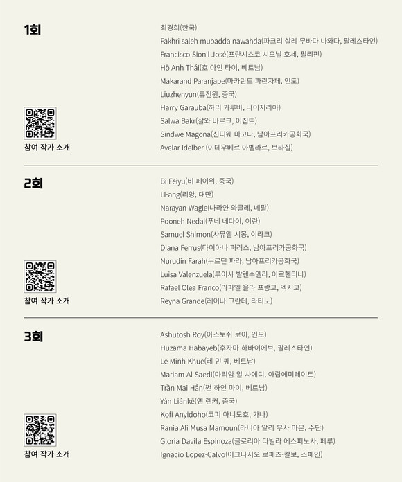 이번 전시는 인천문화재단이 2010년부터 2013년까지 총 4회에 걸쳐 인천에서 운영했던 인천 AALA 문학 포럼(아시아·아프리카·라틴아메리카 문학 포럼)에 참여한 작가들의 핸드프린팅을 전시하여, 국제 문학 교류의 장으로서 인천의 문학적 위상을 다시금 조명하고자 기획되었다. 전시에서는 2010년 제1회, 2011년 제2회, 2012년 제3회 포럼에 참여한 총 30명의 작가 핸드프린팅과 작가별 소개 자료를 함께 만나볼 수 있다. 이를 통해 인천을 찾은 세계적 작가들의 자취와 세계 문학의 다양성을 한눈에 살펴볼 수 있다.