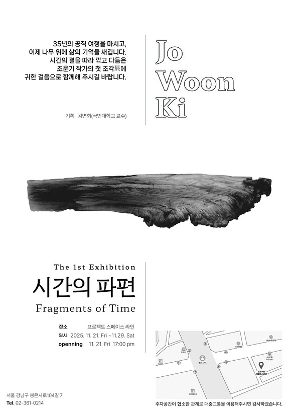 〈시간의 파편〉은 삶의 이면에 잠재한 시간의 무게와 아름다움을 담아낸 전시다. 조운기의 작품 속 나무는 단순한 재료를 넘어, 인간의 인내와 성찰, 그리고 삶의 지속성을 상징한다. 오랜 세월 한길을 걸어온 작가의 첫걸음이 예술로 이어지는 순간, 우리는 그의 조각 속에서 ‘시간이 머무는 자리’를 마주하게 된다.