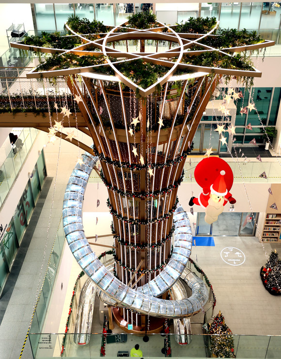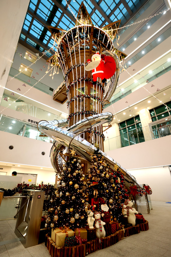 서울 동작구(구청장 박일하)가 신청사의 명물, 슬라이드 ‘동작스타’를 초대형 크리스마스트리로 새롭게 단장했다고 밝혔다.