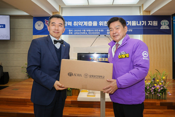 서울 동대문구(구청장 이필형)는 19일 삼육보건대학교와 국제민간구호기구 아드라코리아로부터 김장김치, 설렁탕, 겨울 생필품이 포함된 동계물품 600세트(약 2400만 원)를 기탁받았다고 밝혔다.