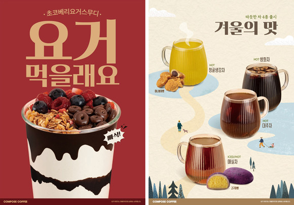 컴포즈커피도 겨울 시즌을 맞아 ‘초코베리요거스무디’와 전통차 4종을 출시하고, 겨울 디저트 판매를 강화한다고 25일 밝혔다. 최근 요거트와 다양한 토핑을 결합한 ‘디저트형 음료’가 하나의 카테고리로 자리 잡고 있는 트렌드를 반영한 신제품이다.