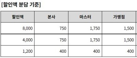 겉으로 보면 가맹점주 분담금(1500원)은 전체 판촉비용의 37%에 불과해 부담이 크지 않아 보인다. 그러나 이를 실제 가맹사업 구조에 대입하면 전혀 다른 양상이 나타난다.
