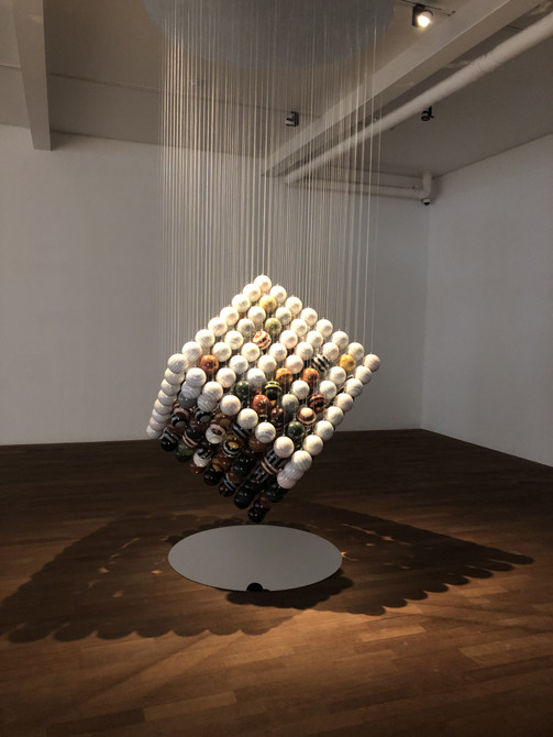 ‘쿠보(Cubo)’는 일반적으로 바닥에 설치된 조각과 달리 천장에 매달린 조각이다. 또한 이 조각을 밀면 구슬들이 서로 부딪히며 소리가 난다. 앞선 작업이 시각적으로 새 시도를 했다면, 이는 청각까지 끌어들인 작업이다. 시각장애인인 안드레아 보첼 리가 작가의 조각 틈에 귀를 대고 소리를 듣거나 손으로 형태를 더듬으며, 오감으로 작품을 경험했다는 일화에서 영감을 받아 시작한 작품이다. 작가는 “단순 눈으로 보는 데 그치지 않고 만지면서 느끼고, 귀로 듣는 작업을 해보고 싶었다”고 말했다.