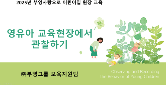 부영그룹이 ‘부영 사랑으로 어린이집’ 원장들을 대상으로 관찰 및 원내 학습공동체 운영 역량 강화를 위한 교육 프로그램을 진행한다.