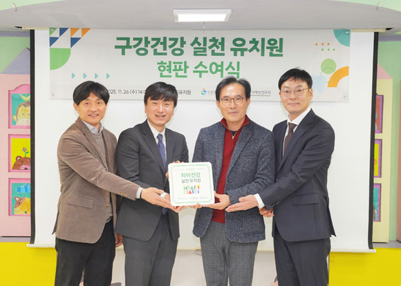 롯데웰푸드는 인천시 서구 소재 ‘예지유치원’에서 스마트해빗 치아건강 실천 유치원 인증식을 지난 26일 진행했다고 27일 밝혔다. 자일리톨 스마트해빗 교육급식을 우수하게 진행한 유치원을 대상으로 인증 현판과 수료증을 전달하는 행사다. 행사에는 김동하 롯데웰푸드 자일리톨마케팅팀 팀장, 최환영 인천광역시교육청 체육건강교육과 과장, 이병진 충치예방연구회 회장, 김덕윤 예지유치원 원장을 비롯한 관계자들이 참석했다.