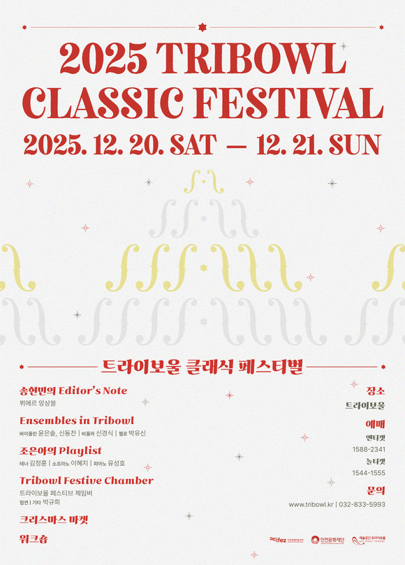 (재)인천문화재단에서 운영하는 인천 송도에 위치한 예술공간 트라이보울은 12월 20일(토), 21일(일) 이틀간 ‘2025 트라이보울 클래식 페스티벌’을 개최한다.