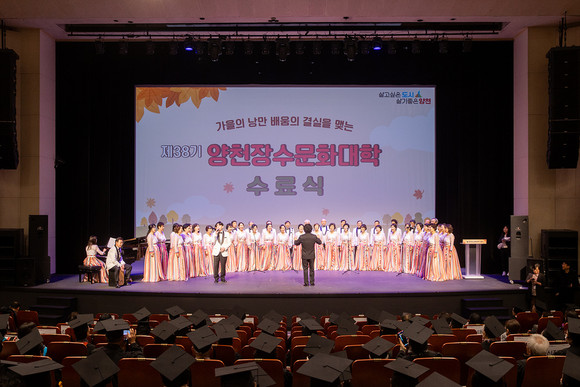 서울 양천구(구청장 이기재)가 11월 26일 양천문화회관 대극장에서 제38기 『양천장수문화대학』 통합 수료식을 열고, 지역 어르신들과 함께 배움의 결실을 나누는 뜻깊은 시간을 가졌다.