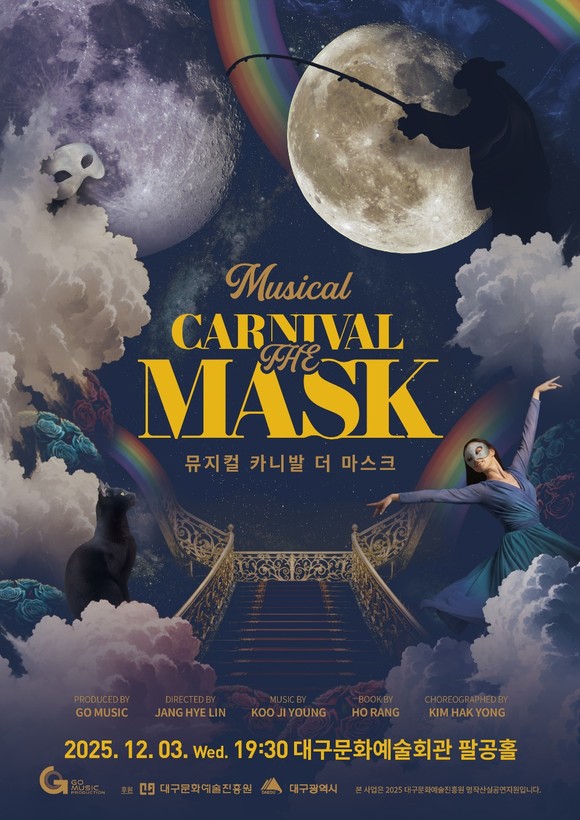 먼저 12월 3일(수)에 공연되는 지오뮤직(GO MUSIC)의 ‘CARNIVAR – THE MASK(카니발-더 마스크)’는 눈과 귀를 사로잡는 화려한 음악과 퍼포먼스, 공감과 울림을 선사하는 감성적인 서사, 무대 위에서 살아 숨 쉬는 환상의 세계를 그려낸 마치 축제 같은 쇼 뮤지컬의 세계로 이끈다. 이러한 몰입감과 스케일이 작품의 주요 관람 포인트이다. 이번 공연은 장혜린 연출을 중심으로 구지영의 음악, 호랑의 극작, 김학용의 안무가 함께 어우러져 완성되었다.