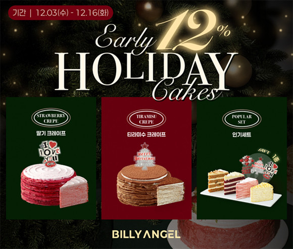 빌리엔젤 브랜드 운영사인 그레닉스 곽계민 대표는 “연말을 맞아 소중한 사람들과 함께 특별한 시간을 보낼 수 있도록 사전 예약 할인 행사를 준비했다”며 “빌리엔젤의 시그니처 크레이프 케이크로 따뜻한 연말을 맞이하길 바란다”고 말했다.