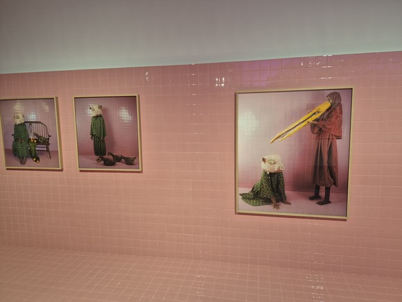마이타 압달라 작가의 작품 '몽상과 악몽 사이에서'는 작가가 청소년기에서 성인기로 넘어가는 복합적 전환의 순간을 담은 사진 연작으로 변화하는 외모, 사회적 억압, 그리고 형성 중인 정체성이 중첩되는 복잡한 시기를 탐구한다. 특히 작가는 지역 민담과 신화에서 영감을 받아 새와 돼지 같은 동물을 연출된 장면에 등장시키며 순수와 죄, 성장의 이중성을 상징하는 장치로 삼는다.