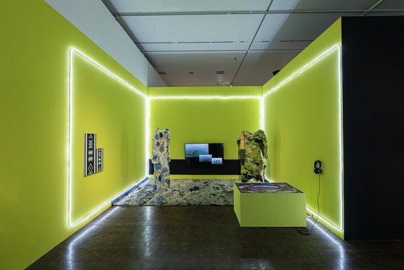 섹션 1 <회전의 장소>는 파라 알 카시미(Farah Al Qasimi)가 제안하는 ‘심장 공간(heartspace)’개념을 중심으로 익숙한 일상의 변형을 탐구한다. 파라 알 카시미는 1990–2000년대 걸프 대중문화의 미학을 통해 익숙한 일상을 낯선 무대로 전환시키는 방식을 선보인다. 집처럼 꾸며진 공간에서 내면세계와 급변하는 외부 세계가 충돌하며 발생하는 섬뜩함을 드러낸다. 참여작가들은 빠르게 변하는 환경 속에서 신화·몽상·스토리텔링을 조합해 자아와 집의 의미를 새롭게 구성하며, 말하기 어려운 현실에 대한 능동적 예술적 대응을 시도한다.