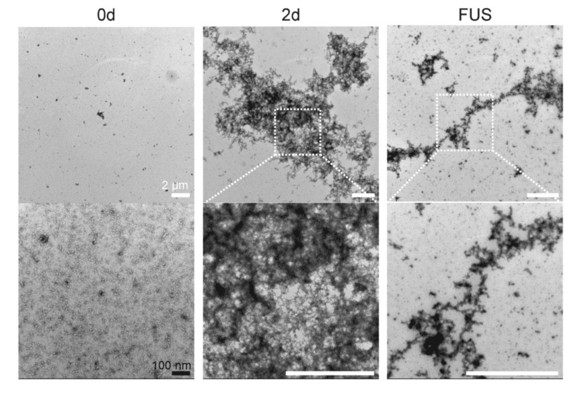 집속 초음파에 의한 아밀로이드 베타 응집체와 신경세포 보호 효과. 전자현미경 촬영 결과 뭉쳐있던 아밀로이드 응집체(2d)가 초음파 조사 후(FUS) 잘게 부서진 것을 확인할 수 있다. 사진=한림대동탄성심병원
