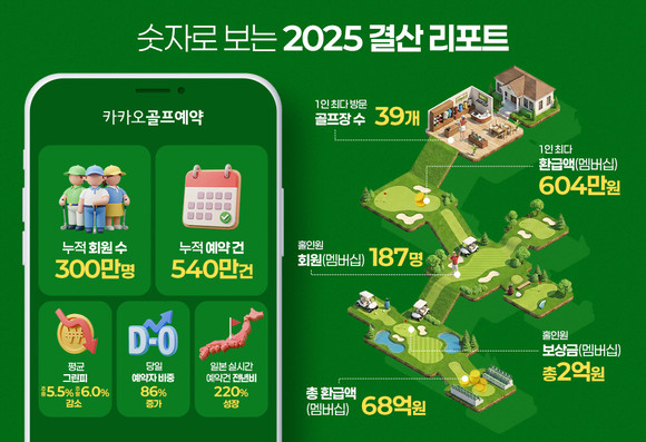 카카오 VX 관계자는 “불확실성이 컸던 환경 속에서도 골퍼와 골프장이 함께 성장하는 생태계를 구축한 노력이 결산 리포트 수치로 확인됐다”며 “앞으로도 멤버십 이용자를 위한 차별화된 서비스를 확대해 골퍼 만족도를 높이고, 전국 골프장의 균형 있는 성장을 지원하겠다”고 말했다.