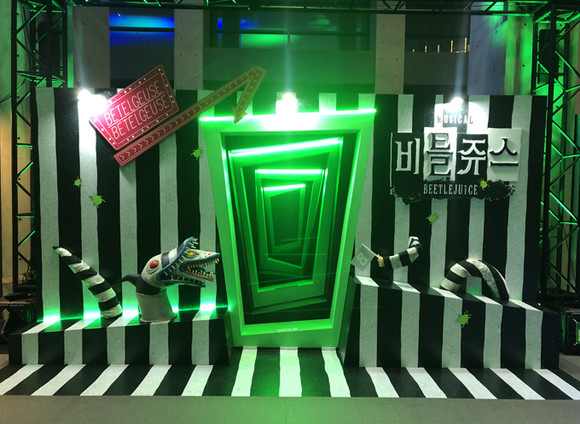 본격 공연장에 들어가기 전 마련된 포토존. 뮤지컬 '비틀쥬스'의 세계관을 짐작케 한다. 사진=김금영 기자