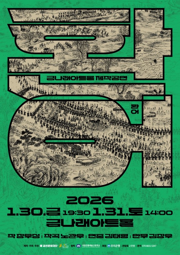 서영철 금천문화재단 대표이사는 “초연 이후 관객과 현장의 반응을 바탕으로 작품을 보완했다”라며 “‘환어’가 금천의 역사와 상상력이 결합된 대표적인 지역 창작 콘텐츠로 자리매김하길 기대한다”라고 전했다.