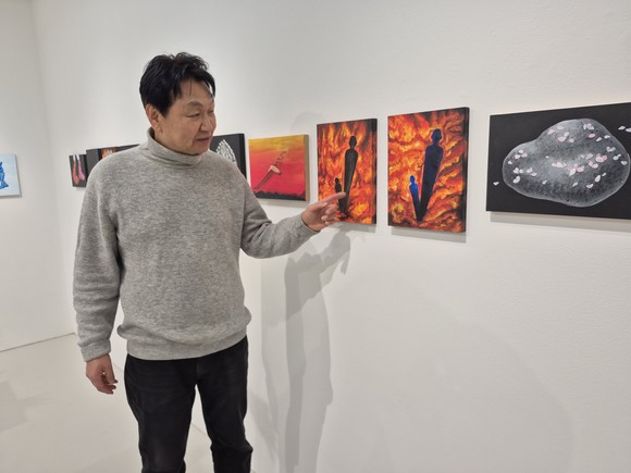 노화랑에서 선보이는 <그리움의 그림자>에서 화강암과 스테인리스 스틸을 재료로 한 조각들과 더불어 출품되는 회화 작품인 아크릴 페인팅 작품들은 색채를 매개로 조각 작품과는 또 다른 섬세한 감각과 정서를 담아내며, 작가의 조형적 세계를 한층 더 풍부하게 보여준다. 이러한 작업들을 통해 본 전시는 수십 년간 축적되어 온 작가의 사유와 미학을 조망할 수 있는 의미 있는 자리다. 관람객은 혼란스러운 세상 속에서도 불안 속에 굳건히 자신의 자리를 지키는 개인들의 모습을 되새길 수 있는 계기가 될 것이다.