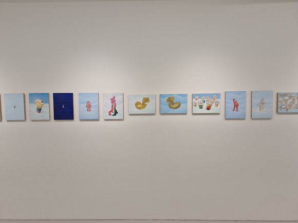 전시장에는 조각과 함께 초벌 그림인 에스키스 80점이 함께 전시되어 있다. 이에 대해 작가는 “머릿속에서 수많은 상상의 표상들을 2차원의 이미지로 스케치합니다 스케치에서 조금 더 진보된 확장된 것을 에스키스라고 하죠. 채색을 한 이유는 조각에서는 채색하기가 힘들어서 채색 조각을 많이 했는데 그 힘든 부분을 자유롭게 할 수 있고 배경도 자유롭게 칠할 수 있는 것이 회화의 장점입니다. 전시된 에스키스들은 3년동안 그린 것입니다”라고 설명했다.