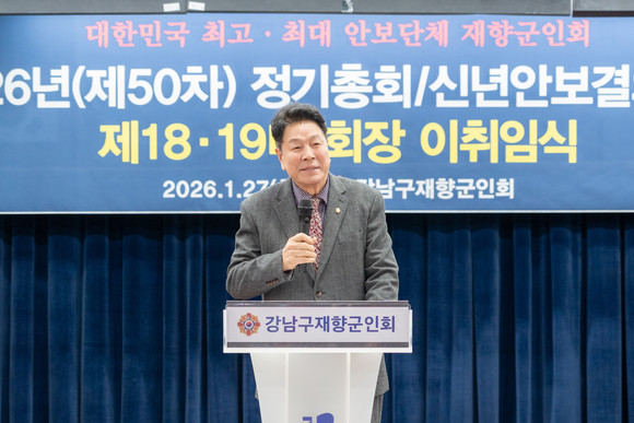 서울 강남구의회(의장 이호귀)는 27일 논현2동 주민센터 7층 대강당에서 열린 ‘강남구 재향군인회 이·취임식 및 신년 안보결의대회’에 참석했다.
