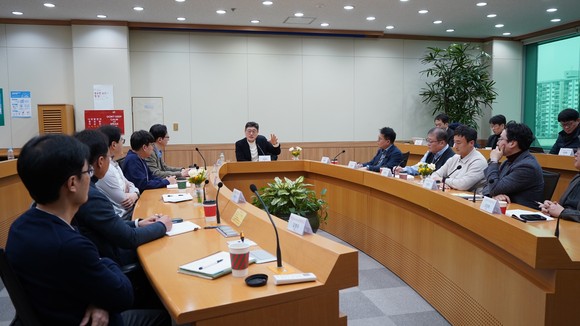 SKT 정재헌 CEO가 광주 우산사옥에서 임원-팀장 티 미팅을 진행하는 모습. 사진=SK텔레콤