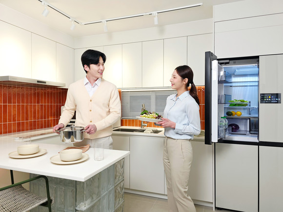세탁실에서는 일체형 세탁건조기 ‘비스포크 AI 콤보’가 귀가 시간에 맞춰 세탁과 건조를 완료하고, 이후 드레스룸의 ‘비스포크 에어드레서’와 연동돼 의류 소재에 맞춘 관리가 이뤄지는 과정을 시연한다. 주방에는 ‘비스포크 AI 하이브리드 4도어 키친핏 맥스’ 냉장고를 비롯해 인덕션, 오븐, 정수기 등 다양한 주방 가전이 연동돼 식재료 관리와 조리가 보다 효율적으로 이뤄진다. 해당 냉장고는 식재료를 자동 인식해 푸드 리스트를 생성하는 ‘AI 푸드매니저’와 음성으로 문을 여는 ‘오토 오픈 도어’ 기능을 갖췄다.