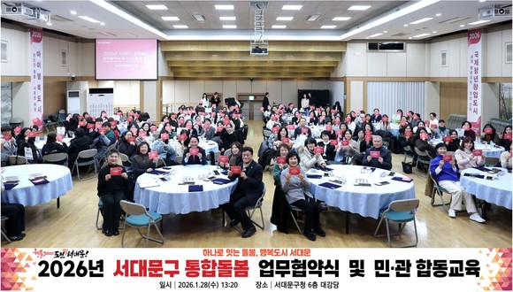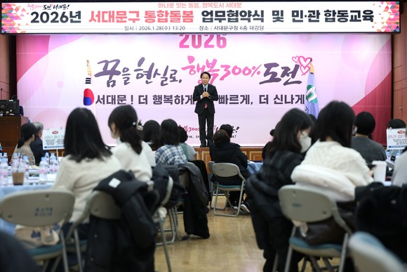 서울 서대문구(구청장 이성헌)는 최근 구청 6층 대강당에서 2026년 통합돌봄 지원사업 업무협약식 및 민관 합동교육을 개최했다고 6일 밝혔다.